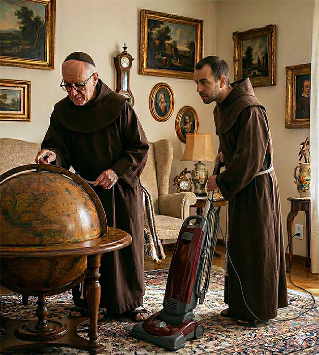W każdym klasztorze jest tzw. salka rekreacyjna - coś w rodzaju salonu. Tam bracia spotykają się na kawie, na pogaduszkach, na grach planszowych itp. Jeśli w tej salce jest też telewizor (a zazwyczaj jest), to też na wspólnym oglądaniu tego, co akurat się napatoczy. Wtedy wiadomo - kto ma pilot, ten ma władzę.